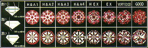 一隻日本進口優霓車工觀鑽鏡,再對照左邊H&A鑽石車工等級表即知!